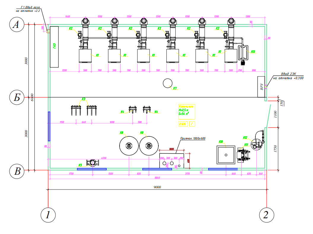 Давление подающегося газа не должно превышать 5 кПа (низкое давление газа), если же в газовой сети оно выше, котельные оборудуются ГРПШ (пункт редуцирования газа шкафной).