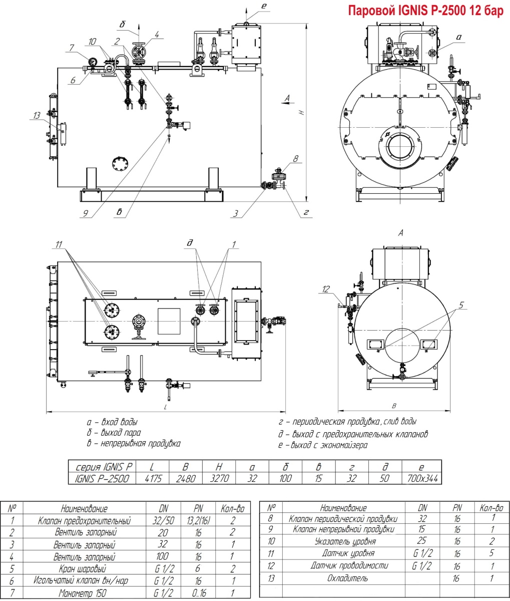Технические характеристики парового трёхходового котла ARCUS IGNIS P-2500