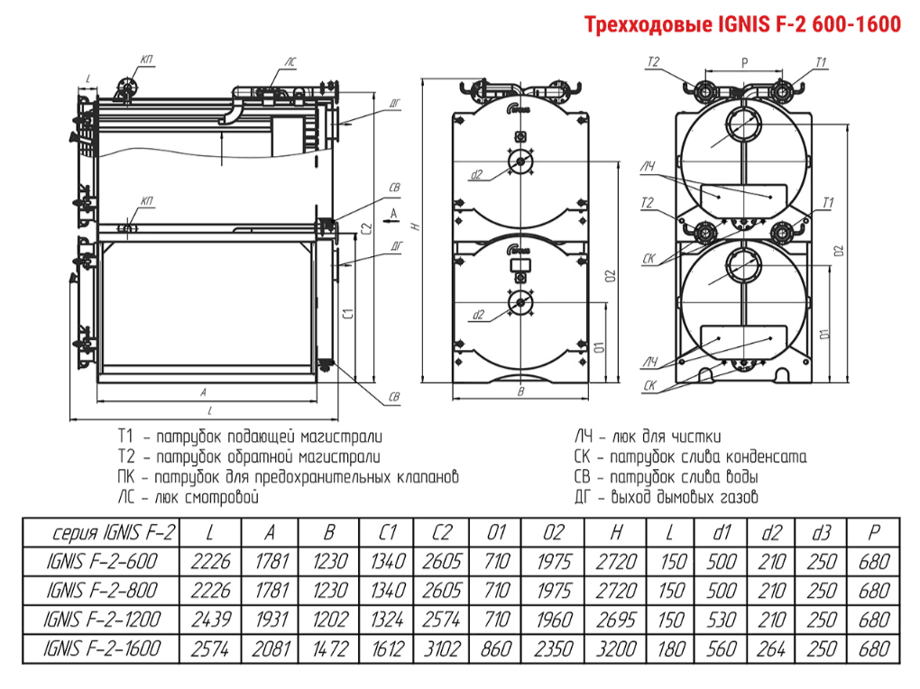 Технические характеристики модульного водогрейного трёхходового котла ARCUS IGNIS F-2-1200